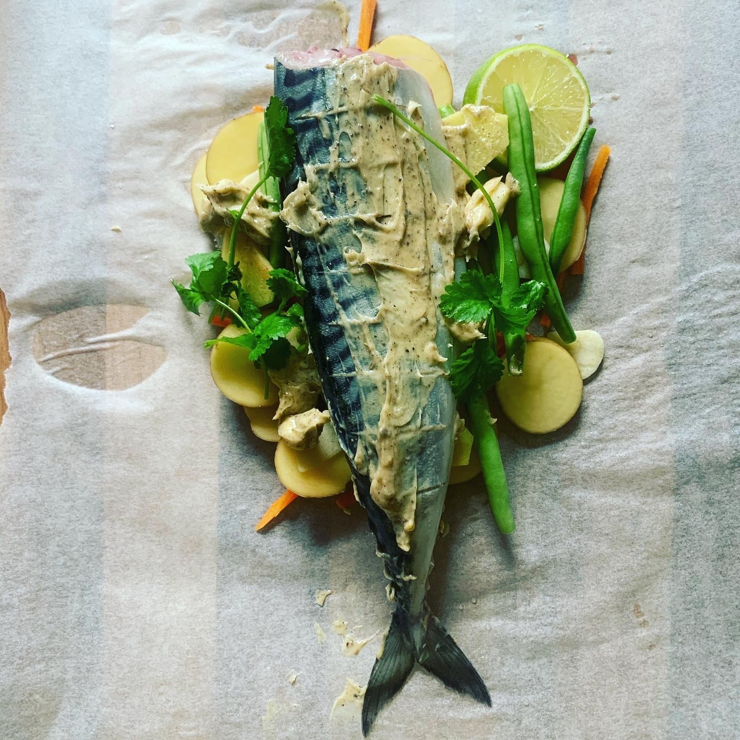 1 mackerel per person, approx 400g fish (gutted, head removed and slashed 3 times up the sides)