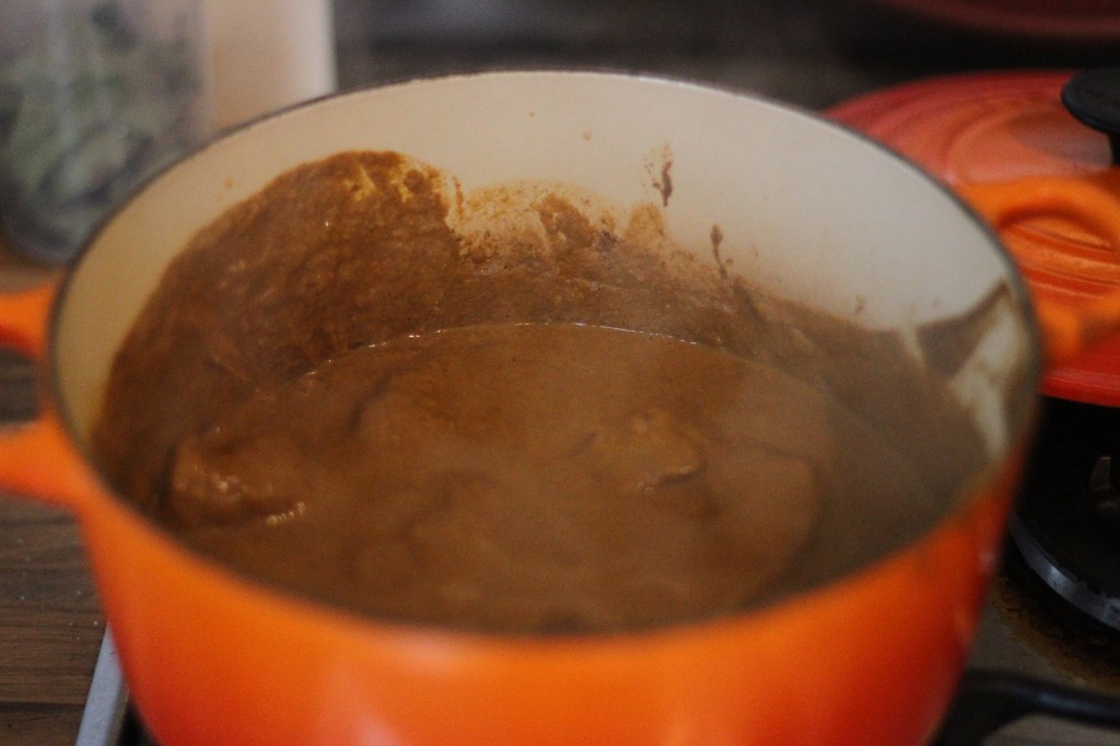 - Heat a sauce pan, add some oil and fry the lamb to brown the outside. Remove the lamb from the pan and set aside.