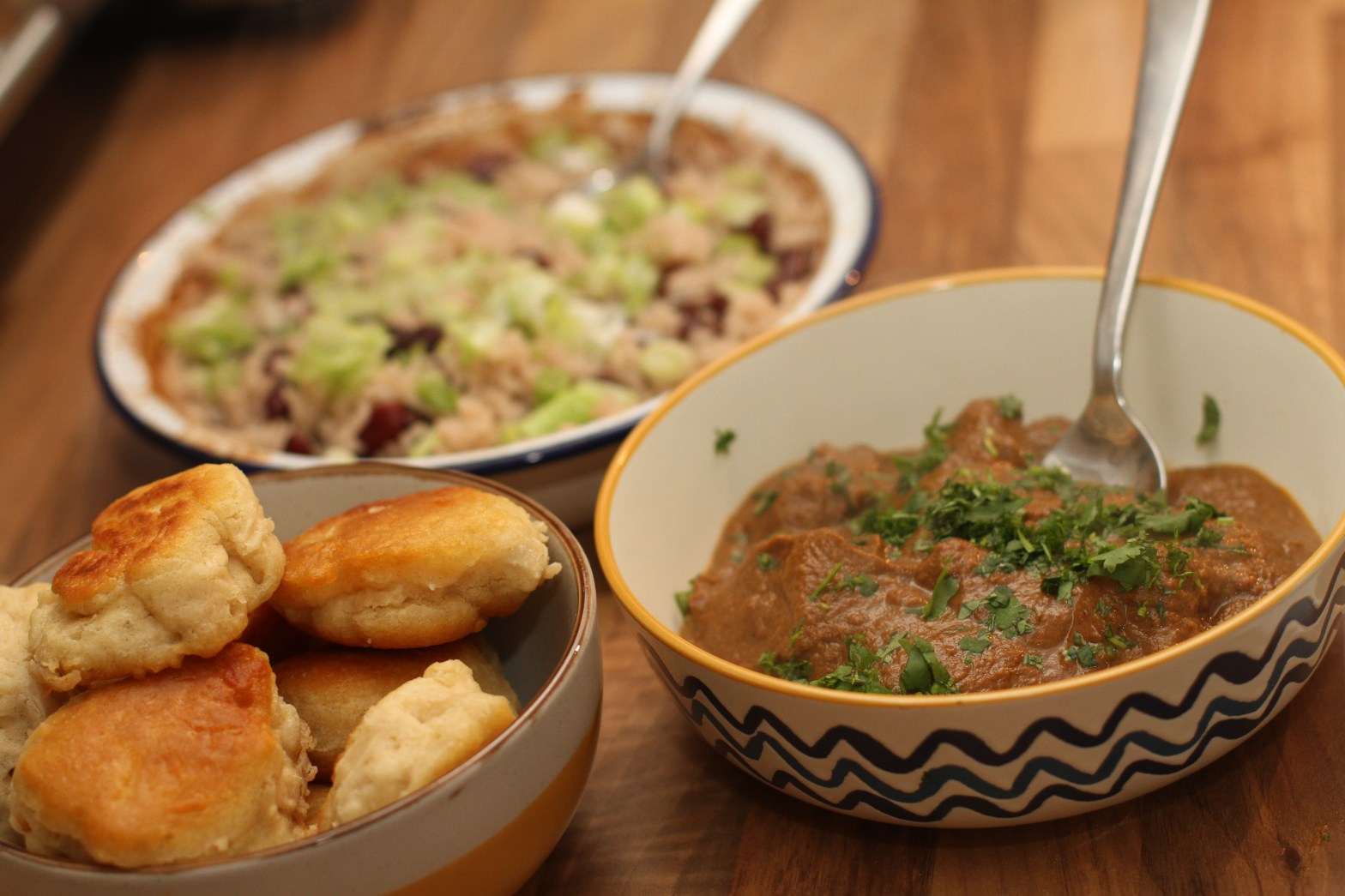 - In an oven proof dish put the rice, hot stock, kidney beans, salt and pepper and butter.