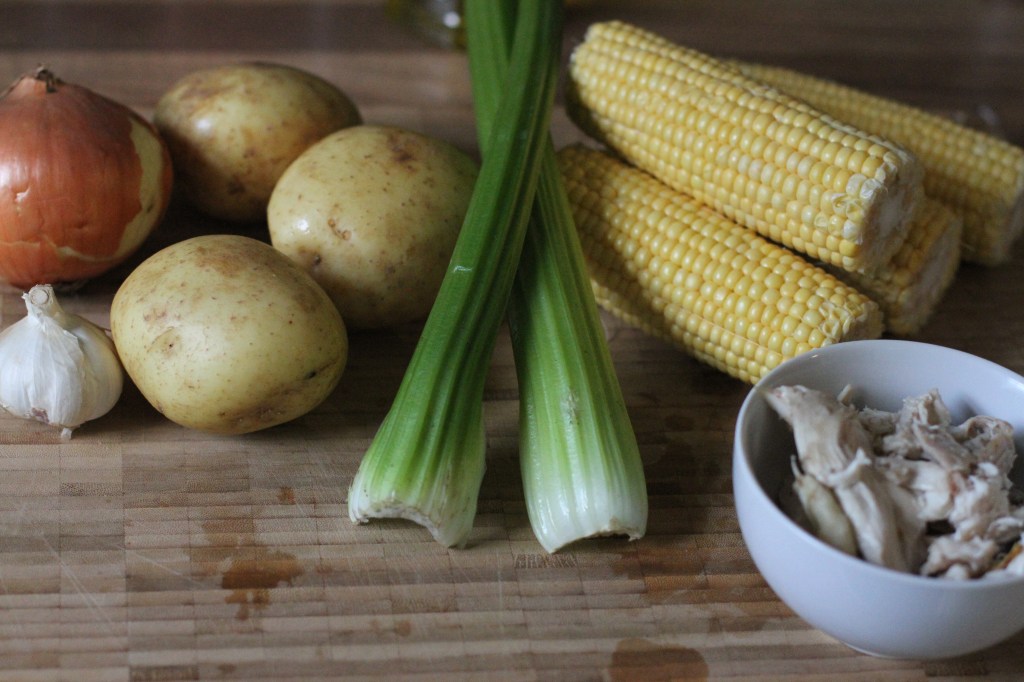 - Add the chicken stock ( there should be about 1500ml), salt and pepper and the sweetcorn nibs and bring to a simmer for 20 minutes.