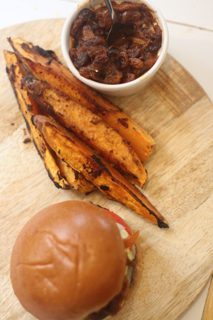 Note: The mix for the burgers and the aubergine chutney can be made the day before and kept in the fridge before the final cooking.