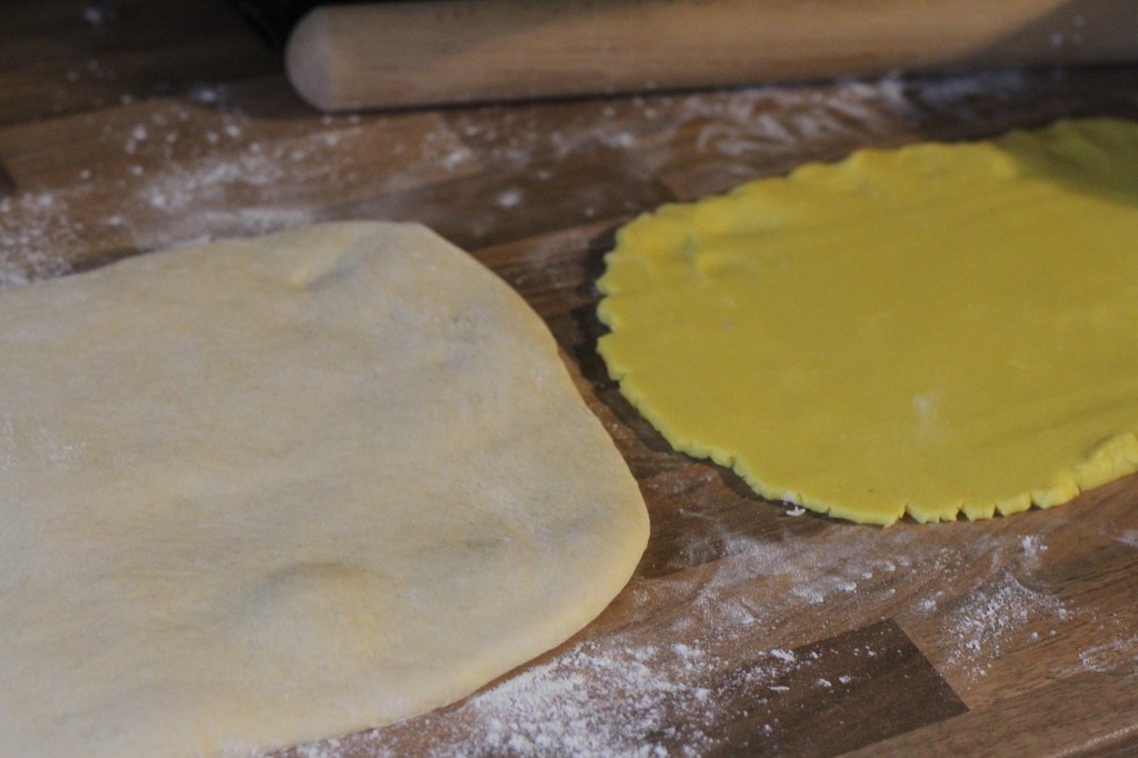 - After this time the dough should be two to three times bigger. Remove from the fridge and gently roll out on a lightly floured surface to a rectangle approximately 1.5 cm thick.