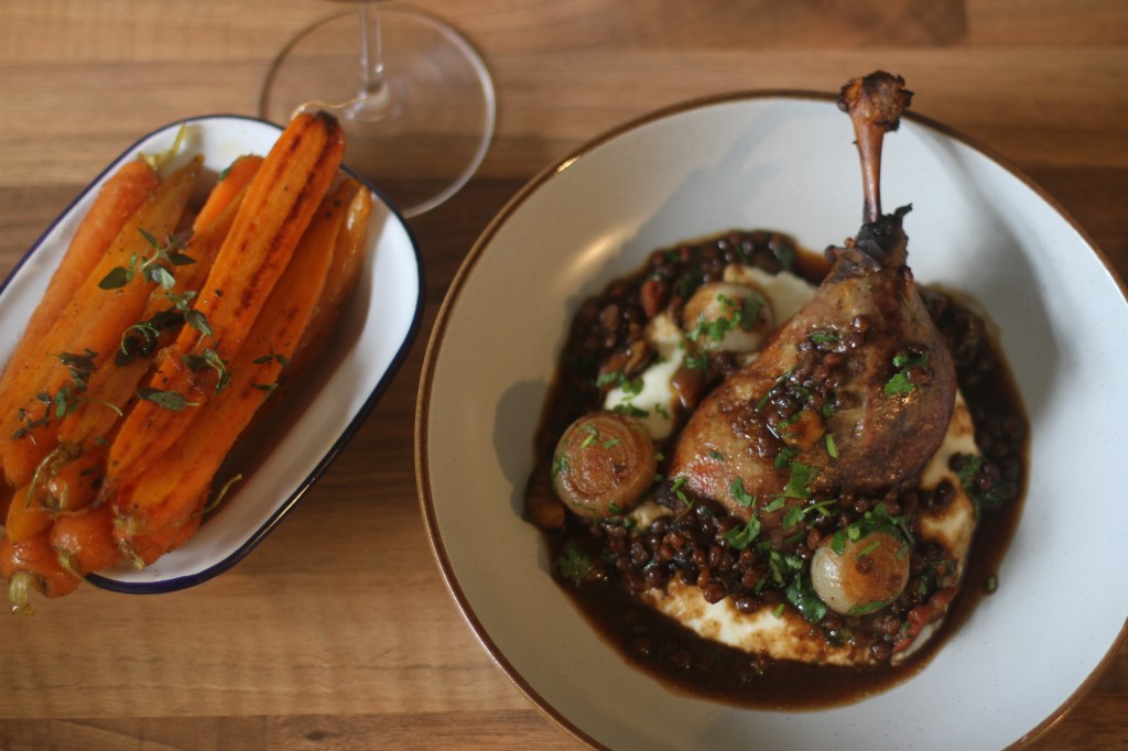 - Stir the parsley into the lentils at the last minute then serve with the puree and duck leg.