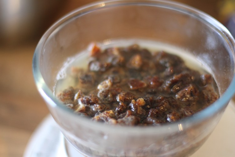 - Pour the boiling water onto the chopped dates and allow to soak for 30 minutes.