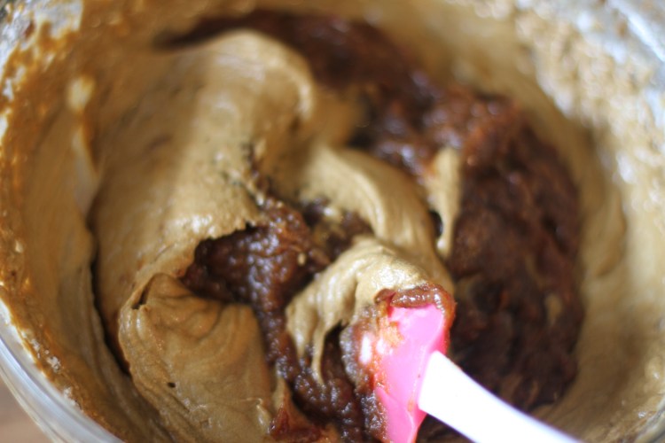 - Fold in the date puree until everything is smooth and evenly mixed.