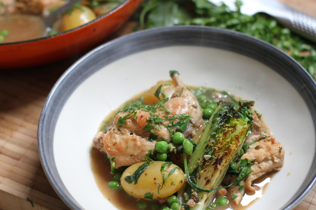 - Bring the pan up to the boil before adding the rabbit pieces and the potatoes, season with salt and pepper, place the lid back on the pan and put in the oven for one hour.